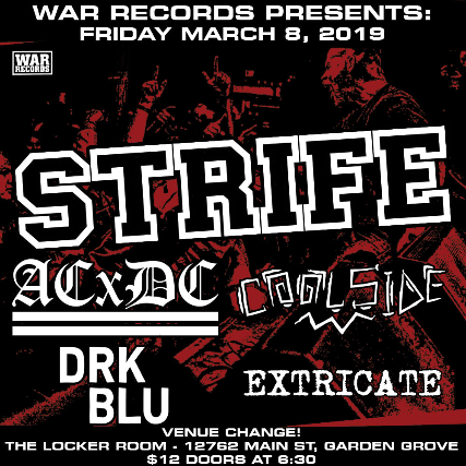 WAR RECORDS presents STRIFE | ACxDC | COOL SIDE | DRK BLU | EXTRICATE inside Locker Room @ Garden Amp