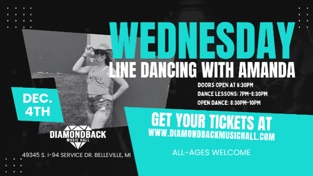 Join us EVERY WEDNESDAY at Diamondback Music Hall for exciting line dance lessons taught by Line Dancing with Amanda! You don’t need any prior experience—just bring your enthusiasm and get ready to have a blast! This class is perfect for everyone, whether you're a beginner, intermediate, or advanced dancer👯♀️ ALL-Ages Welcome!