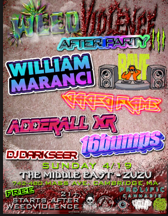 Weedviolence After Party: William Maranci, Jaded Flame, Adderall XR, 16Bumps, DJ Darkseer
