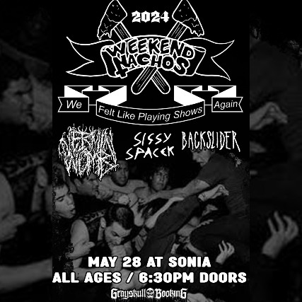 Grayskull Booking Presents: Weekend Nachos, Vermin Womb, Sissy Spacek, Backslider, All Ages, $20 advance / $25 day of show, 6:30 pm doors