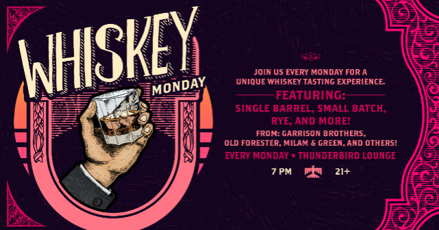 Join us every Monday for a unique Whiskey Tasting experience.