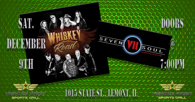 Whiskey Road and Seven Soul are performing on December 9th at Heroes West in Lemont. Come early for dinner and stay for the show! This is a 21+ Event
