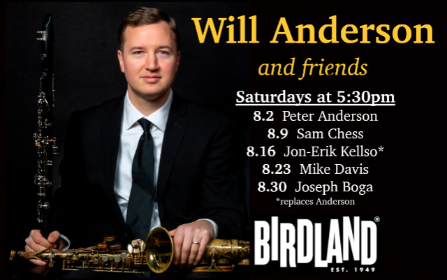 Called a “virtuoso on clarinet and saxophone” (The New York Times), Washington, D.C. native and Juilliard graduate Will Anderson can be heard and seen in the films and TV series: Boardwalk Empire, The Marvelous Mrs. Maisel, Killers of The Flower Moon, and Revolutionary Road. Anderson is a member of the Grammy-Winning Vince Giordano’s Nighthawks (who perform every Monday & Tuesday at Birdland) and David Ostwald's Louis Armstrong Eternity Band (who perform every Wednesday at Birdland). Along with his twin brother, Peter, Will has headlined at Carnegie Hall, The Kennedy Center, The Blue Note, The New Orleans Jazz Festival, and on Garrison Keillor’s Prairie Home Companion. The Washington Post called their music “imaginatively unfolding in ways that consistently bring a fresh perspective to classic jazz.” Will authored a 2024 book entitled Songbook Summit: Fifteen Pioneers of American Sound and serves on the board of the American Popular Song society. www.PeterAndWillAnderson.com