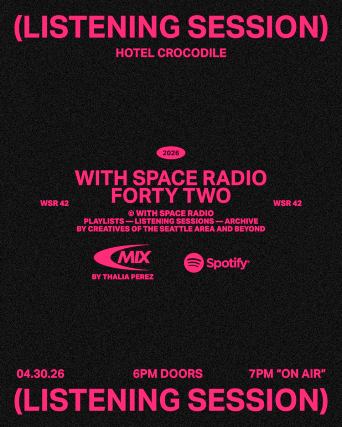 WITH SPACE RADIO (WSR) is a monthly playlist series by creatives of the Seattle area and beyond. We’re back in person to celebrate this month’s new playlist release by Thalia Perez—a Storyteller, Interdisciplinary Artist, & culture Creative Producer rooted in community. 6PM Doors. 7PM "ON AIR". 8:30PM Conversation with Thalia.