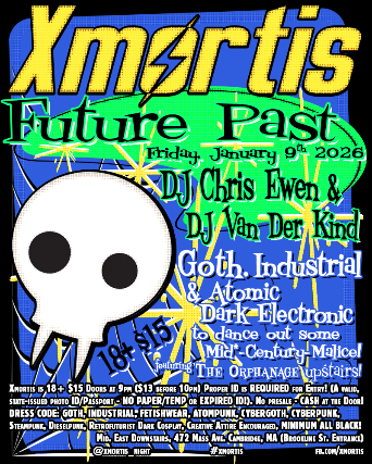 Xmortis Future Past - DJ Chris Ewen & DJ Van Der Kind - Goth, Industrial, & Atomic Dark Electronic to dance out some of your Mid*-Century-Malice on Friday the 12th of January, 2026!