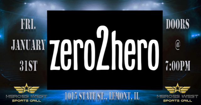 Zero2Hero is performing on Friday, January 31st at Heroes West in Lemont. Come early for dinner and stay for the show! This is a 21+ Event