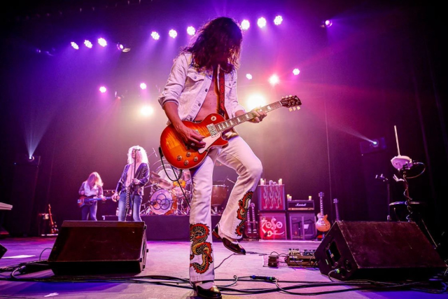Meanwhile, the band’s new blood has turbo-charged the ZOSO formula even more. Drummer Bevan Davies, the band’s burly, black-haired batteur since 2015, flattens the band’s fans nightly with his Bonham-approved triplet blasts, tympani thunder, and fat, lumbering grooves. Davies boasts an impressive pedigree that includes touring tenures with the likes of Danzig, Jerry Cantrell of Alice In Chains, Static X, and regular gigs with The Cult’s Billy Duffy.